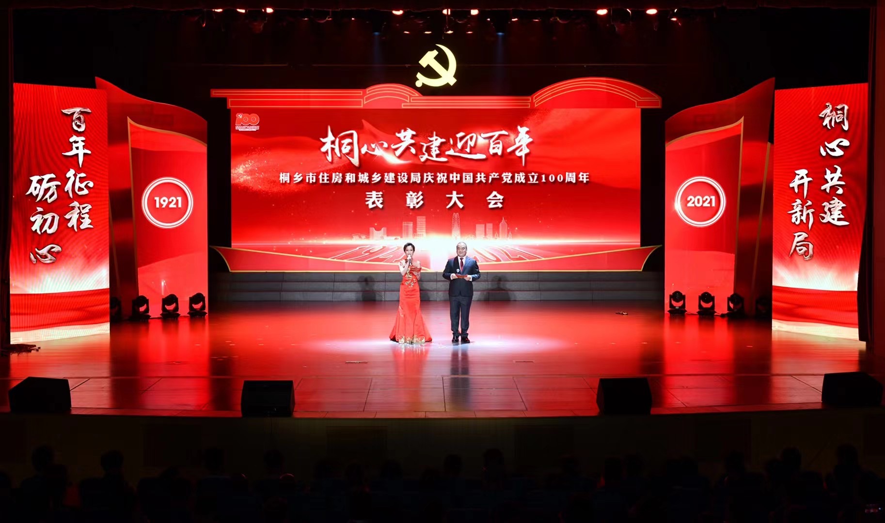 6月28日晚上,桐鄉(xiāng)市住房和城鄉(xiāng)建設(shè)局舉辦“桐心共建迎百年”慶祝中國(guó)共產(chǎn)黨成立100周年表彰大會(huì)。市人民政府副市長(zhǎng)趙月祥, 市政府辦、桐城委、開發(fā)區(qū)、各鎮(zhèn)(街道)、建設(shè)領(lǐng)域行業(yè)企業(yè)代表、建設(shè)局黨委下屬各黨支部書記和建設(shè)局全體機(jī)關(guān)企事業(yè)職工以及受表彰的集體和個(gè)人等出席。浙江崇德建設(shè)有限公司榜上有名受到大會(huì)表彰。
